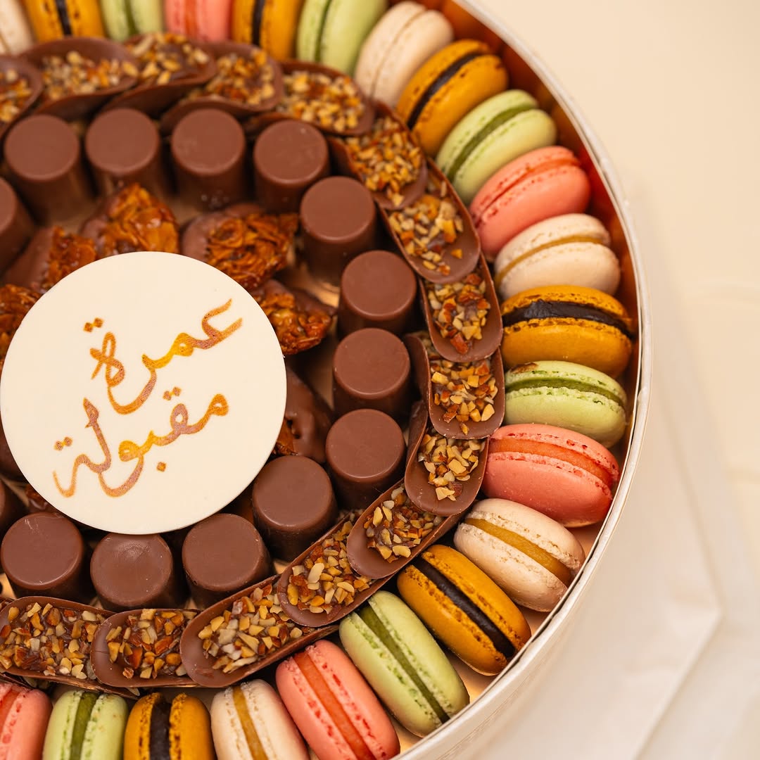 Absolutely beautiful and delicious! The combination of chocolates and macarons is perfect, and the presentation is so elegant—ideal for Eid gifting